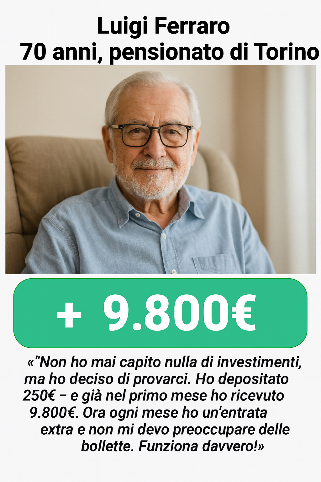 Il sistema è completamente automatizzato: basta registrarsi, attivare l’account e osservare i risultati. Non sono necessarie conoscenze finanziarie né competenze tecniche — serve solo una connessione a Internet.